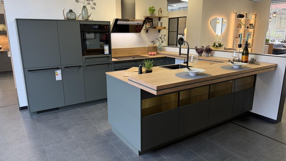 Ausstellungsküche Nobilia Grün Lack inkl. NEFF/Berbel Geräte