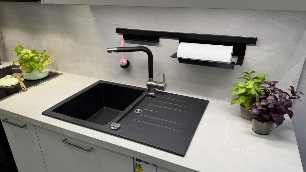 Granit Spüle sowie Armatur und Beleuchtung sind inbegriffen.